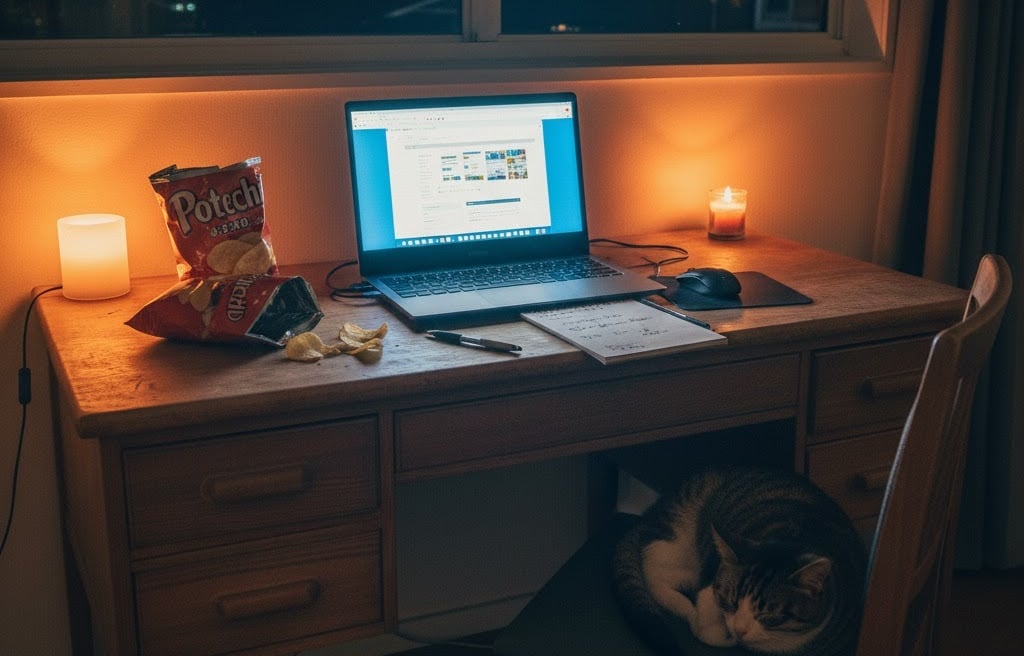 「有益な情報を書かなければ」というプレッシャーに縛られ、ブログ執筆を放置した2年間。プロのコンサルに「需要がない」と言われしぼんだ情熱が、なぜ今、ポテチ爆食いの夜に再燃したのか?ニュース番組ではなく、泥臭い「情熱大陸」を目指すと決めた理由を綴ります。